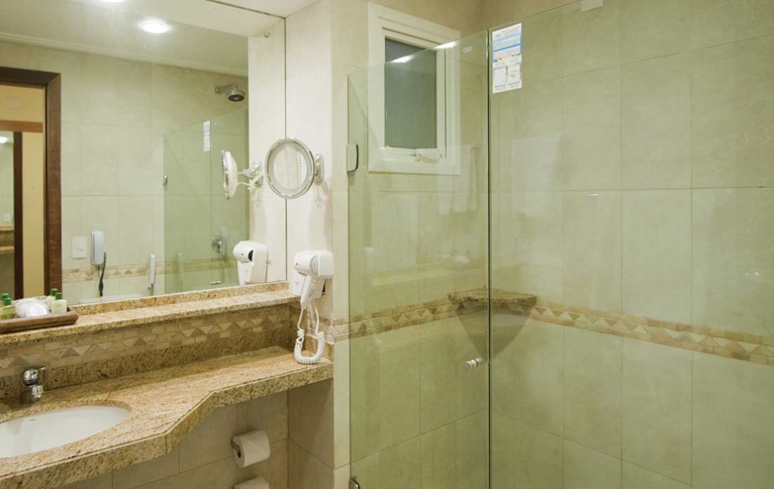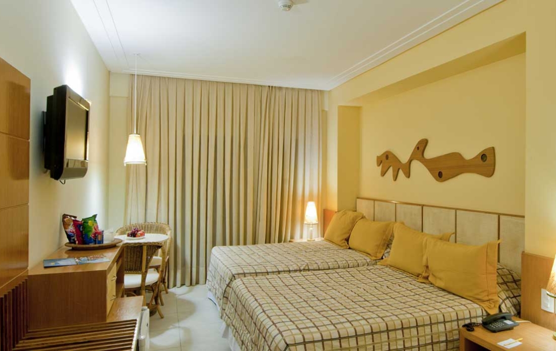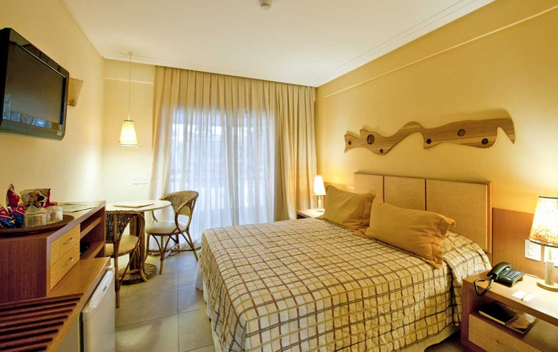 Todos os apartamentos são equipados com ar condicionado central, camas box spring, TV LCD 26″, TV a cabo, Internet Wireless, frigobar, espelho de aumento para maquiagem, secador de cabelo, telefone com discagem DDD/DDI, cofre eletrônico e varanda.